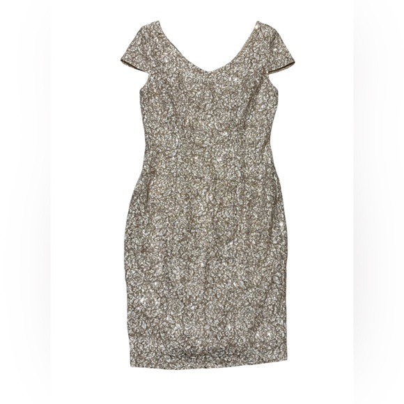 Alex Evening V-Neck Sheath Dress With Cap Sleeves and Cording Detail, Size 10